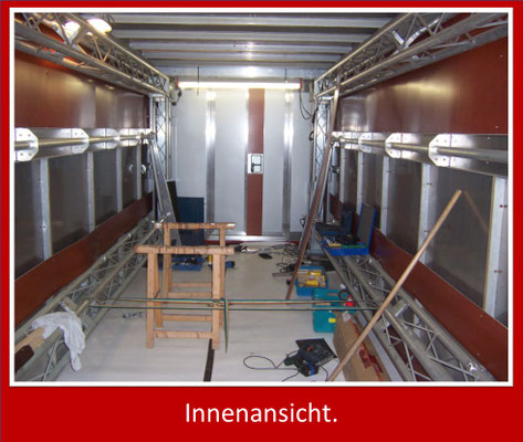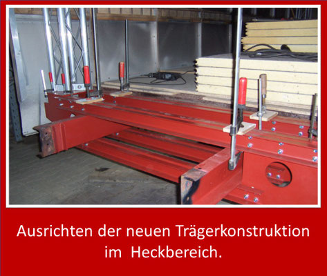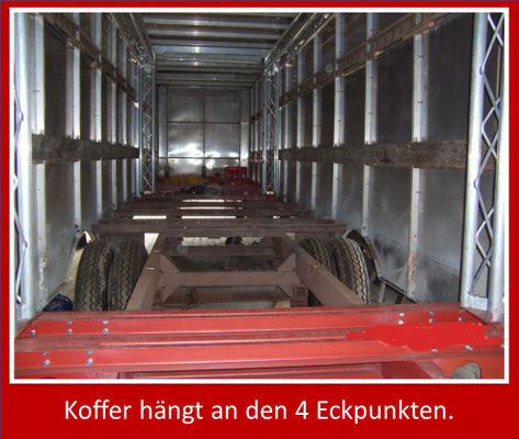 Der Kofferaufbau wurde dann im Dachbereich versteift und Corner Blocks für Traversen der Marke PENN integriert. Danach stützten 4 PENN Traversen den ganzen Aluminium Aufbau während dem Neuaufbau der Unterkonstruktion ab und der verfaulte Unterbau wurde komplett ersetzt.