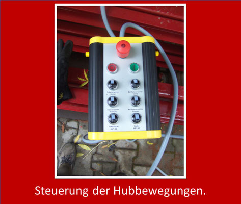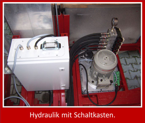 Eine Hydraulik mit Elektro Ventilen und Kabel-Fernbedienung sorgt für die Ansteuerung der Funktionen.