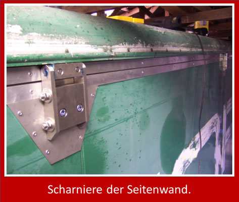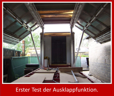 Aus der Notwendigkeit heraus, das Dach irgendwie ab zu stützen um den verfaulten Unterbau ab zu schneiden und zu ersetzen, entwickelten sich die ersten Ideen die Seitenwände als Klappen um zu bauen.