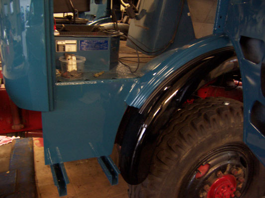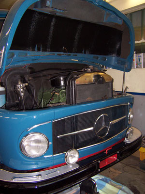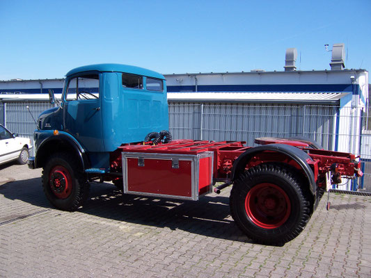 Den nicht Originalen und etwas speziellen Aufbau für Staukiste und Tank haben wir nach ausgiebiger Diskussion nicht zurück gebaut. Die Möglichkeit Werkzeug etc. mit zu führen hat dann am Ende gegen den Original Tank und den Zweikammer-Luftkessel gesprochen! Für den defekten Turbomotor wurde wieder ein Standard 126PS OM352 eingebaut. Ein Turbomotor steht allerdings schon wieder bereit zum Tausch!